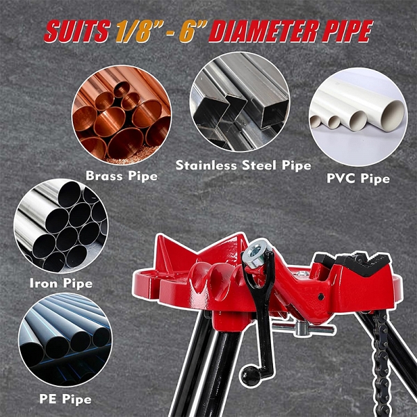 - Бесперебойная работа: можете легко выполнять задачи обеими руками, надежно удерживая трубу – позволяет сосредоточиться на резке, нарезании резьбы или сборке с повышенной точностью и эффективностью