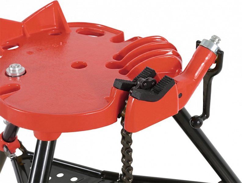 Универсальный складной трубный верстак-тренога с цепными тисками Remmers Tristand 1/8-6 (Реммерс Тристенд 1/8-6) предназначен для работы с трубами Ø 3 – 150 мм (1/8" – 6"), различными предметами и заготовками нестандартной формы. Подходит для различных применений, таких, как: нарезание резьбы, резка, проточка канавок и т.д.